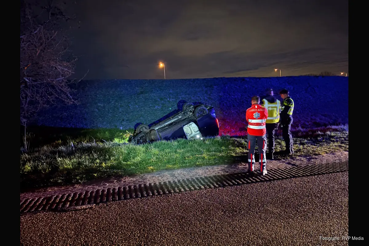 MIDDENMEER- Zaterdagavond rond 21.20 uur is een bestelauto op zijn kop tot stilstand gekomen op de Koggerandweg in Middenmeer.