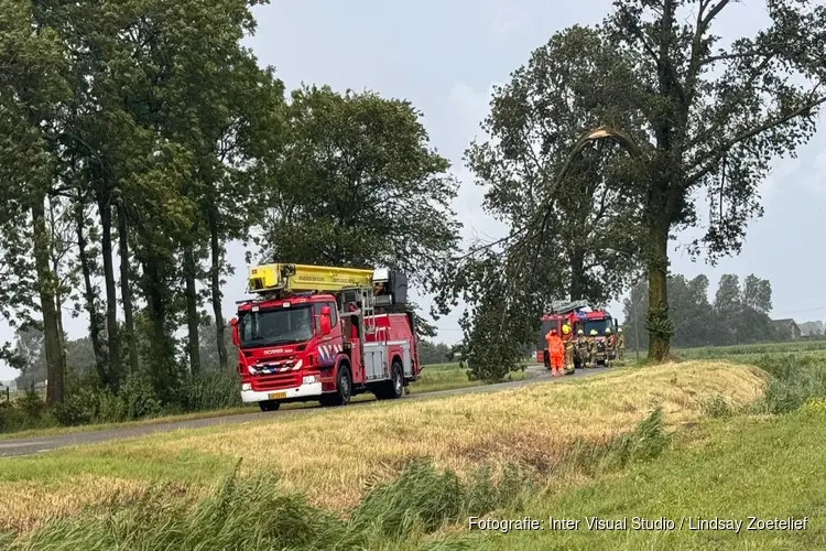 Ter hoogte van de Zuiderweg werd de weg aan beide kanten afgezet. De brandweer zaagde de tak los, met hulp van de hoogwerker.