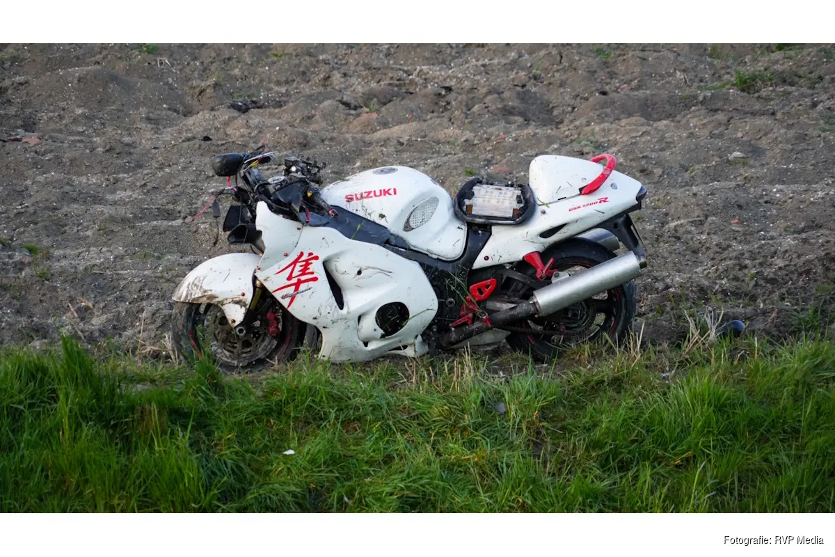 Een bergingsbedrijf heeft één van de beschadigde motoren over de sloot getakeld en vervolgens afgevoerd.