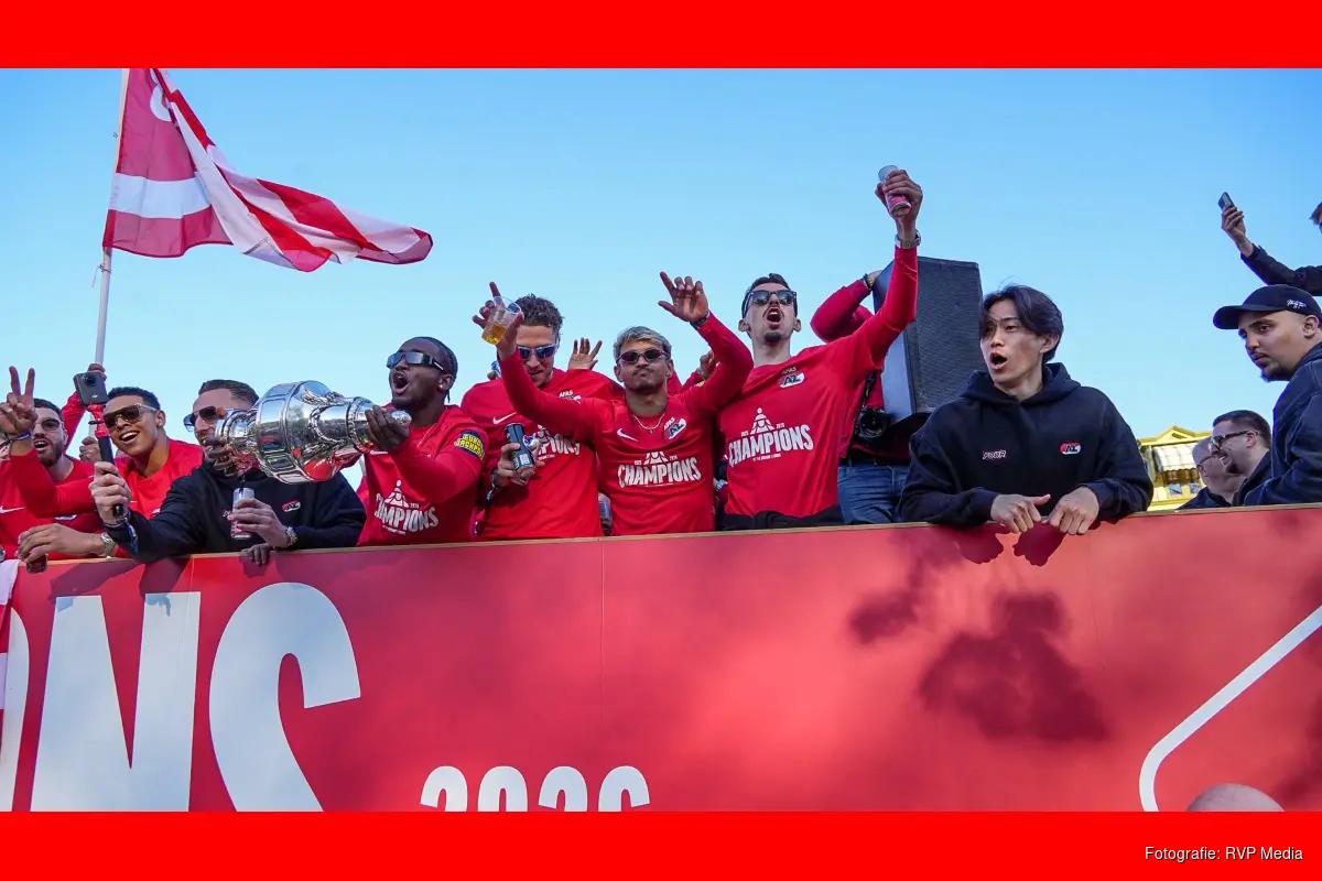 De feestelijkheden begonnen bij de Molen van Piet, waar de selectie in een open bus vertrok. Onder luid gejuich van een lange rij fans reed de bus via de Kennemerstraatweg, de Juliana van Stolberglaan en de Vondelstraat richting het stadion.