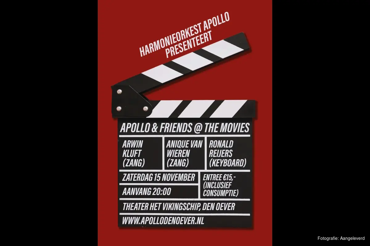 DEN OEVER - Het najaarsconcert van harmonieorkest Apollo staat in het teken van filmmuziek. De mooiste filmmelodieën staan op het programma, zoals muziek uit Indiana Jones, Out of Africa, James Bond en the Godfather, onder leiding van dirigent Jeroen Drenth.