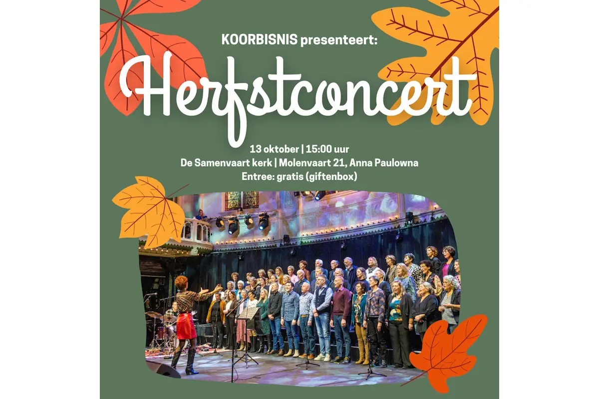 ANNA PAULWONA- Op zondag 13 oktober om 15.00 uur organiseert KoorBisNis een sfeervol Herfstconcert in De Samenvaart kerk (Molenvaart 21, Anna Paulowna). Het belooft een muzikale middag te worden waarin het koor een gevarieerd repertoire ten gehore zal brengen, van klassieke koorwerken tot moderne popmuziek.